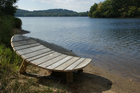 Par ABFORET banc RelaxCHIPS, Design Antoine BESSE. Modèle déposé à l'INPI en 2006. Longueur 200cm, largeur 140cm, hauteur 80cm. Poids 80 kg. sur ossature acier laqué. assise et habillage des pieds en châtaignier non traité origine Limousin-France. visserie inox. Le best-seller des ventes de mobiliers d'extérieur depuis sa création. Acier 8mm découpé au laser, laque noire. Châtaignier scié, séché, transformé chez nous. Banc fabriqué en très petites séries. Utilisé chez les particuliers, mais aussi et essentiellement par les collectivités et entreprises sur les bases de loisirs, parcs aquatiques, sur les hauts de plage, en aire d'observation du ciel etc. Possibilité de réaliser la structure en inox pour bords de mer. Existe en version verticale avec dossier solarium. Référence : ref_LE CHIPS disponibilites : sur commande, ou sur stock selon saison. Prix : 900.00 €